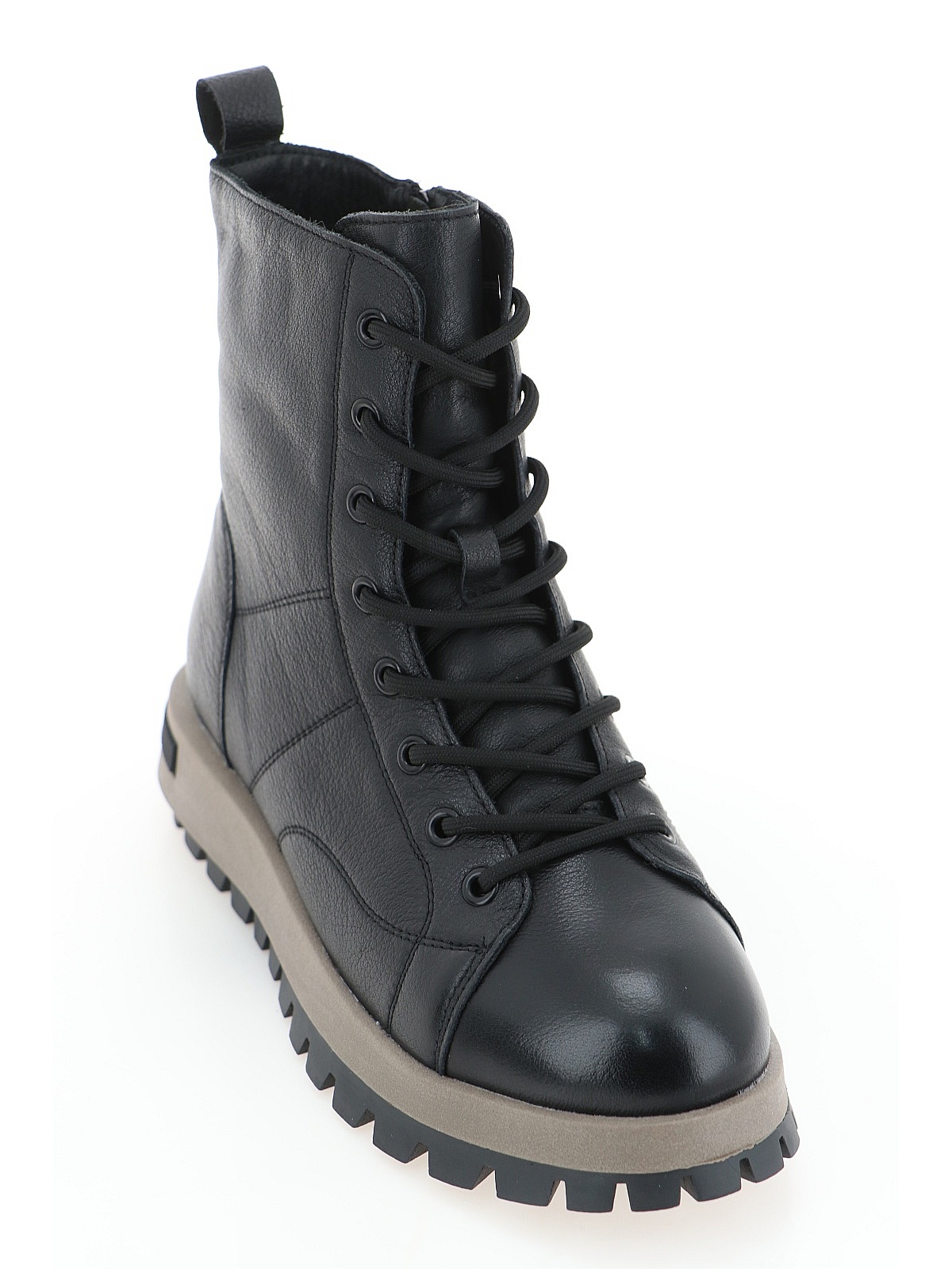 Женские зимние ботинки из натуральной кожи в классическом черном цвете — надежный и стильный выбор для холодного сезона. Модель оснащена теплой подкладкой из натуральной шерсти, которая обеспечивает отличную терморегуляцию и комфорт даже в самые морозные дни. Толстая подошва ТЭП гарантирует отличное сцепление с поверхностью и долговечность, а также защищает от холода и влаги. Эти ботинки идеально сочетают в себе практичность, комфорт и современный дизайн, подходя как для повседневной носки, так и для активного отдыха зимой.