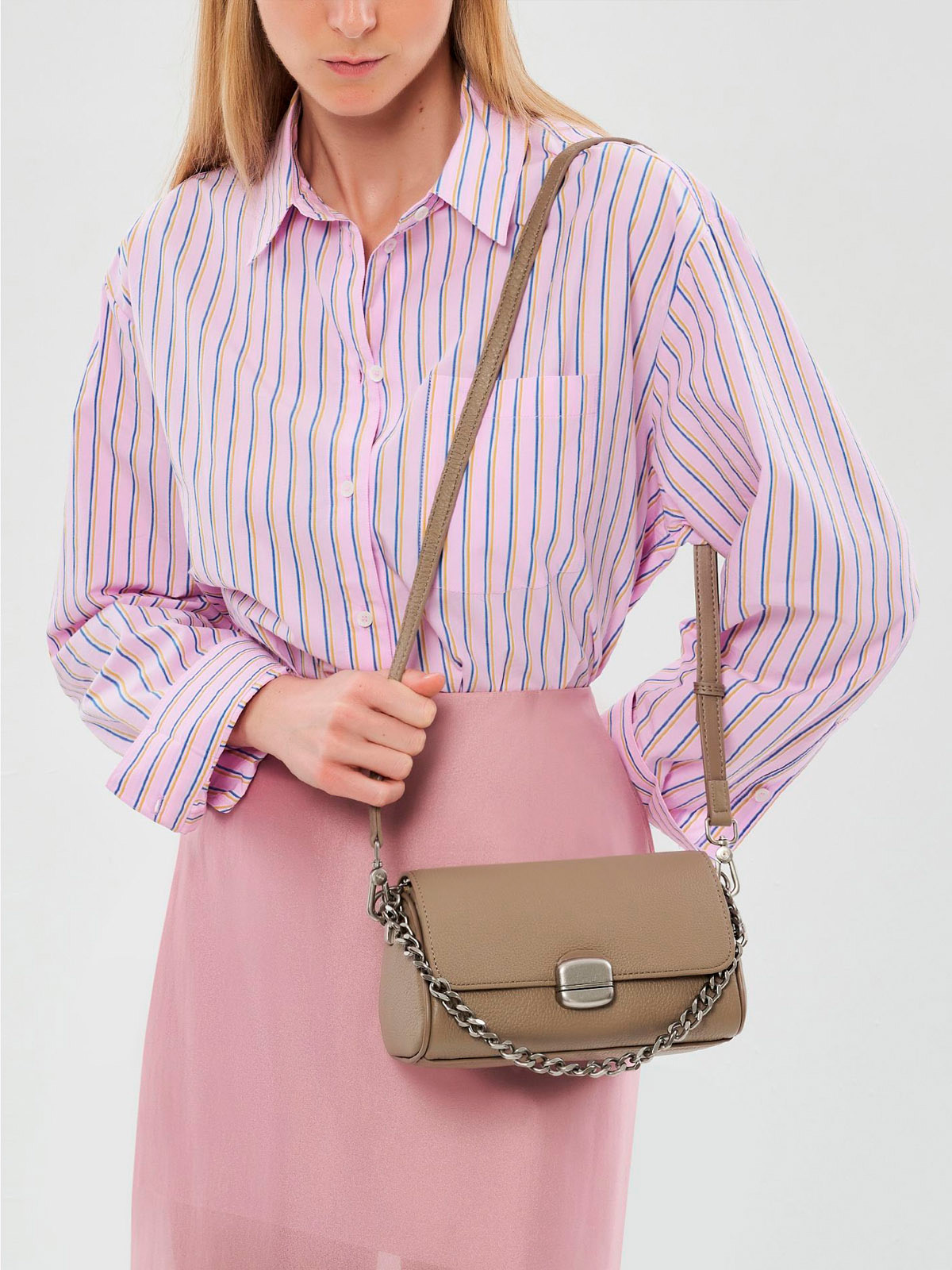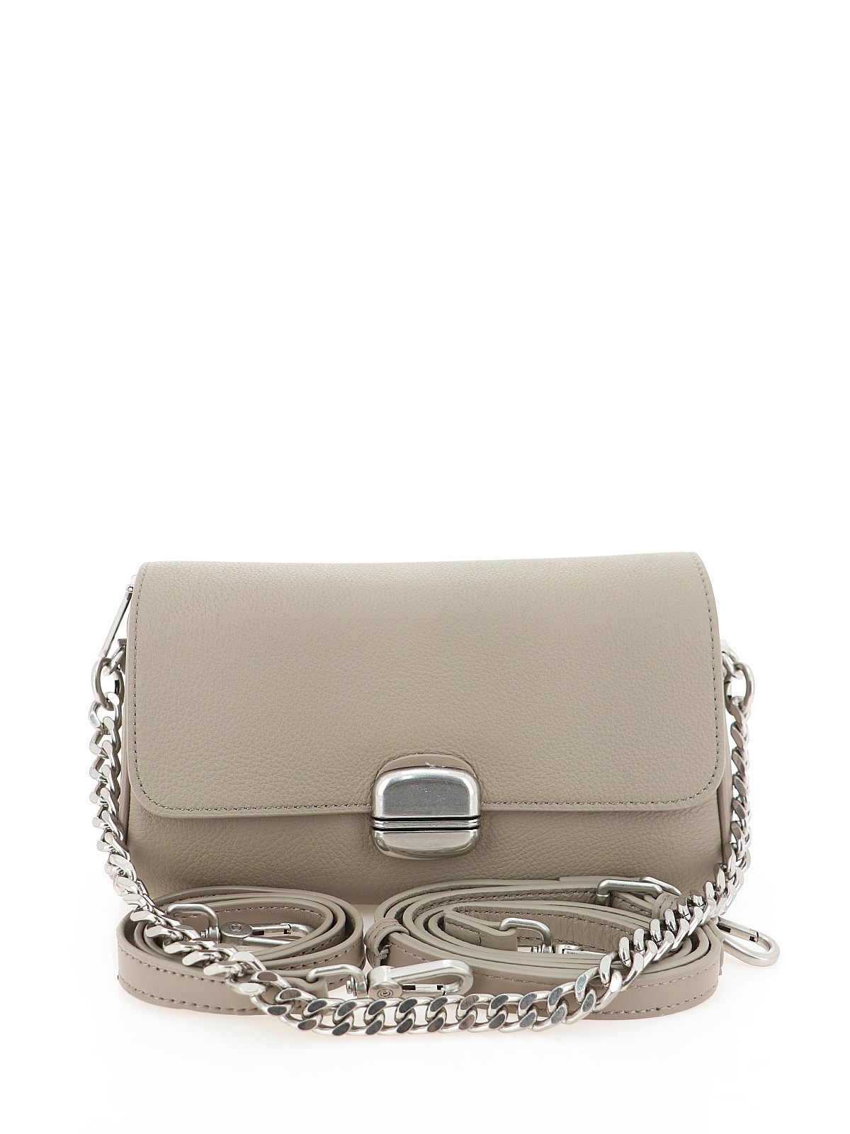 Сумка PORTOFIANO бежевого цвета — элегантный аксессуар из натуральной кожи для вашего повседневного образа. Модель с прямоугольным силуэтом и мягкими закруглёнными углами дополнена изящным клапаном с металлической застёжкой. Носить её удобно на тонкой цепочке-ремне, которая добавляет образу лёгкость. Компактный и практичный дизайн делает эту сумку идеальной спутницей для прогулок по городу и встреч в течение дня.