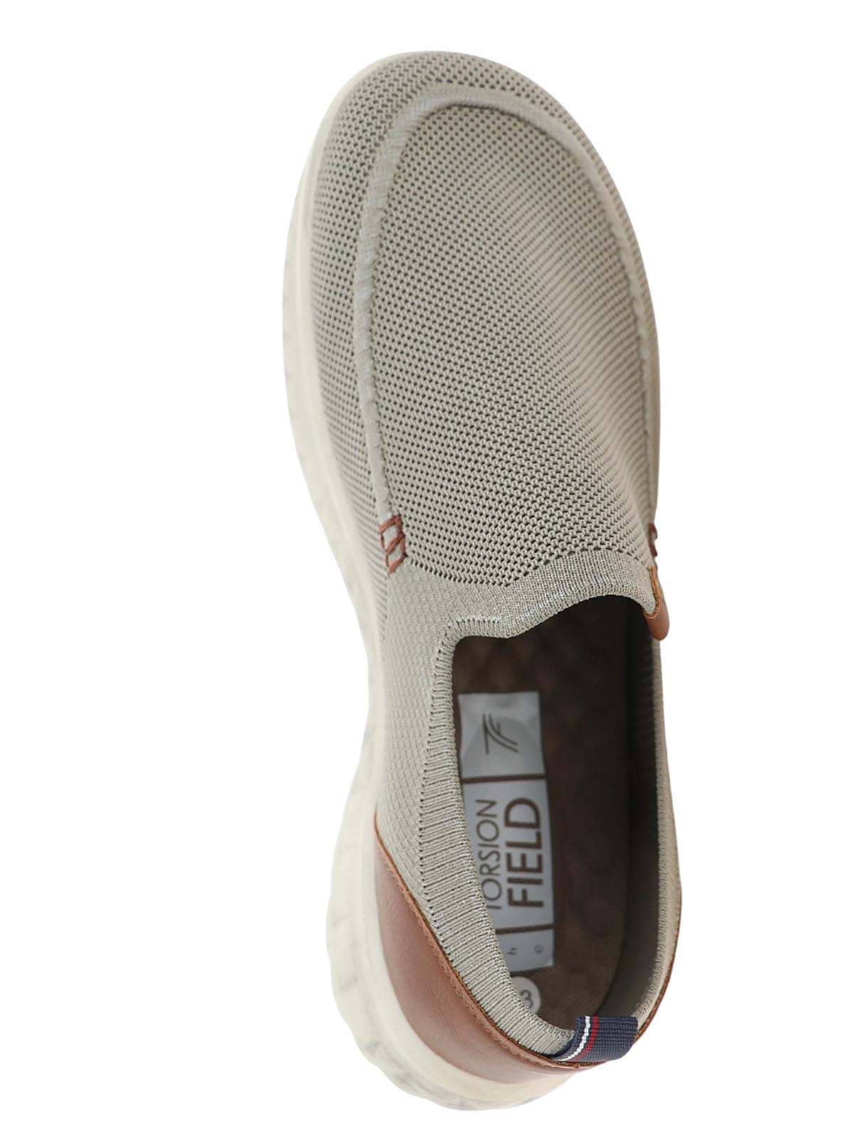 Мужские летние слипоны TORSION FIELD в повседневном стиле. Модель зеленого цвета с коричневой вставкой на пятке выполнена из дышащего текстиля и ориентирована на легкость и мягкость.